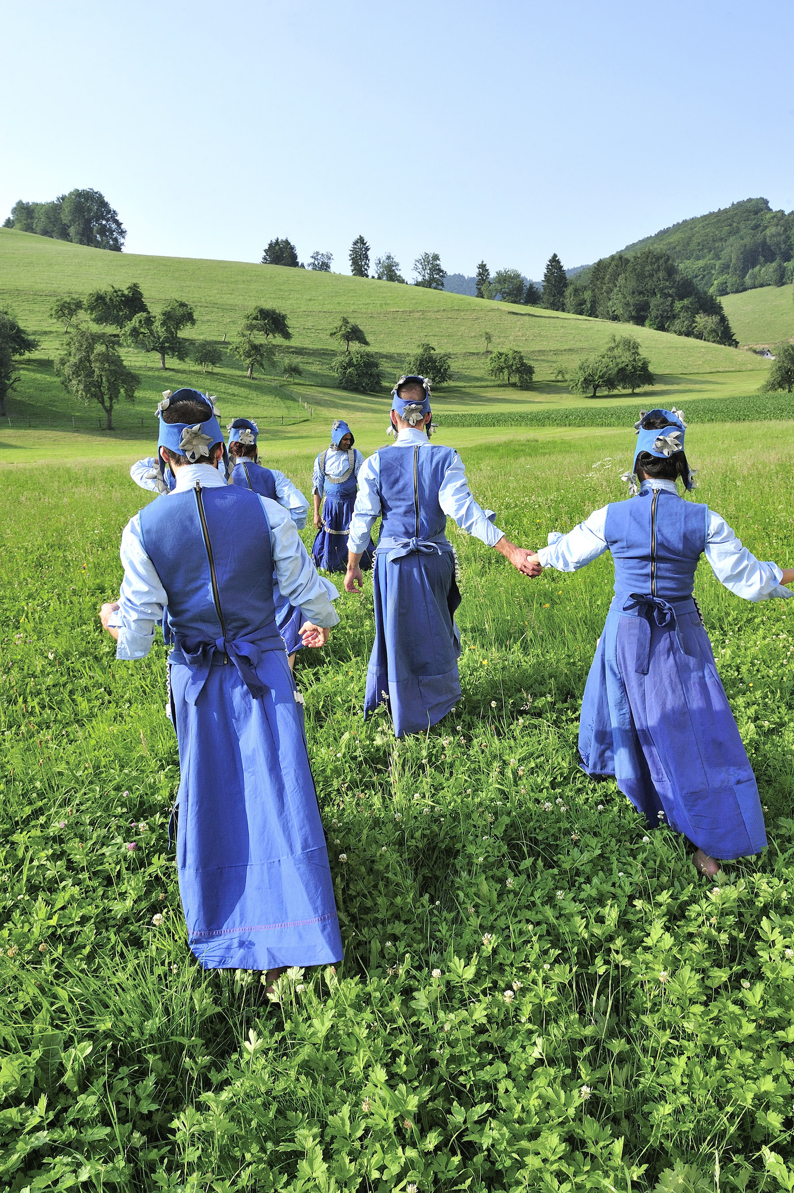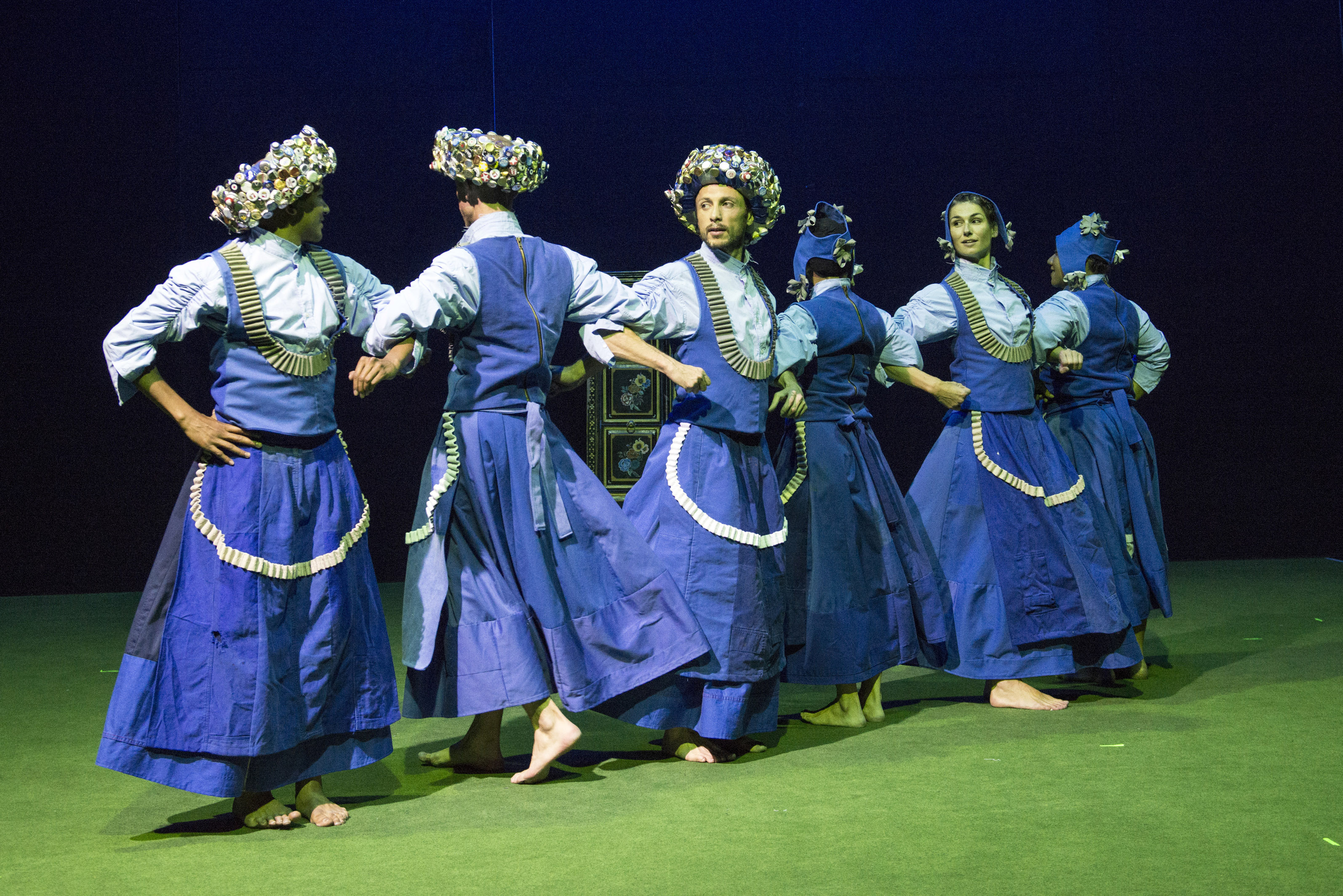 „As I was visiting different groups, all with different folklore, from all over Germany, there were three things I just kept noticing. One was the fabulous minimalist aesthetic found in the folk dance choreography; it created an instant connection to my own choreographic practice. Another was the incredibly intricate system of symbols to be found on the traditional dress, regardless of region; with such a wide variety of symbols, borders, and appliqué. And finally, the conservative way in which all of these groups attempted, doggedly, to protect their cultural heritage from any type of change or modernization. It occurred to me that it was time I did some artistic experiments with dance and tradition.“ (Jochen Roller)